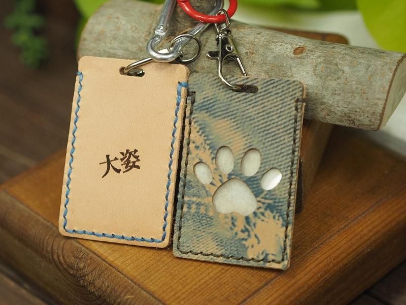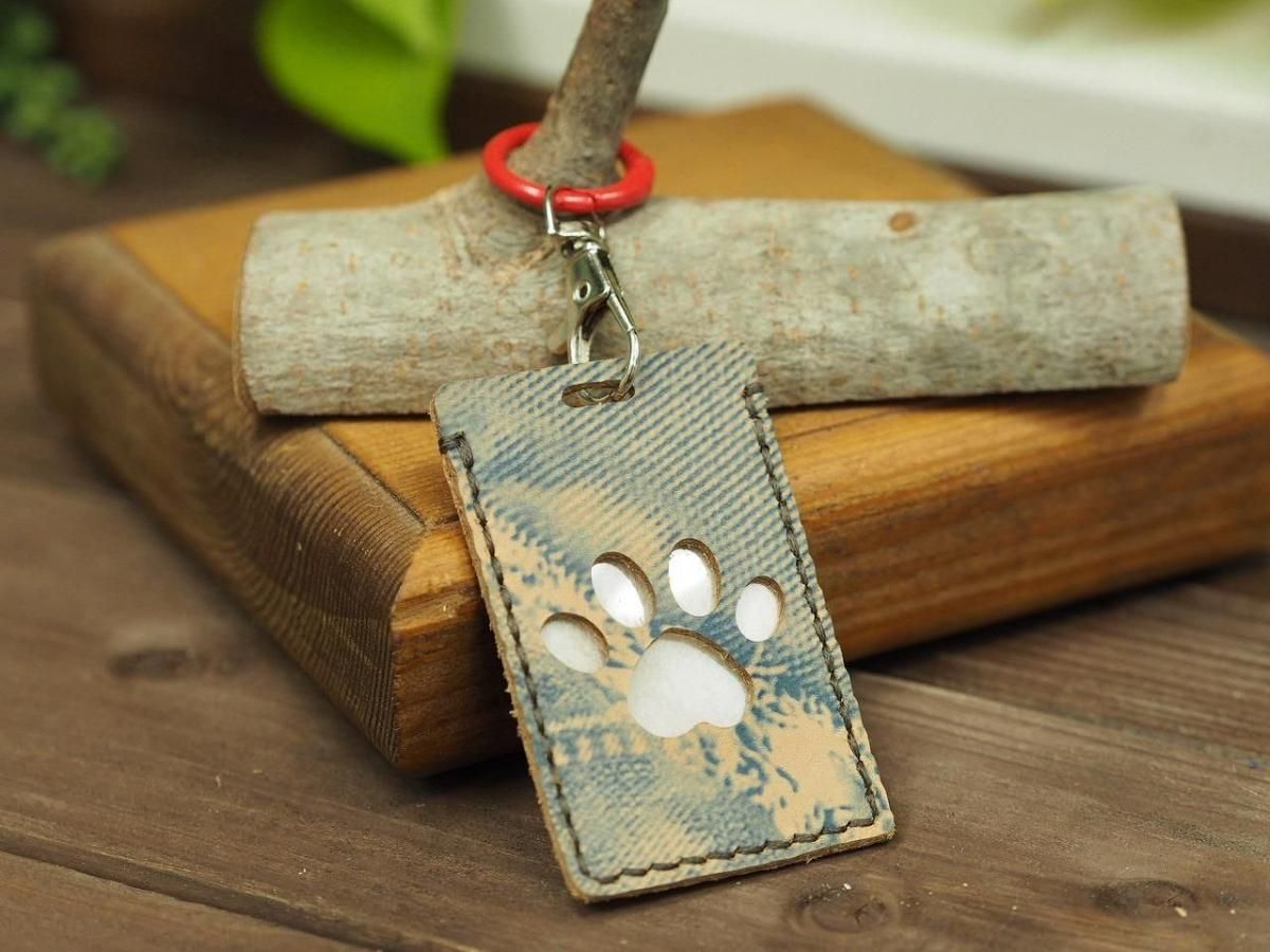 【デニム風レザー】愛犬の毛を入れられる 名前入り本革チャーム|ぬくもりをそばに感じる小さなお守り